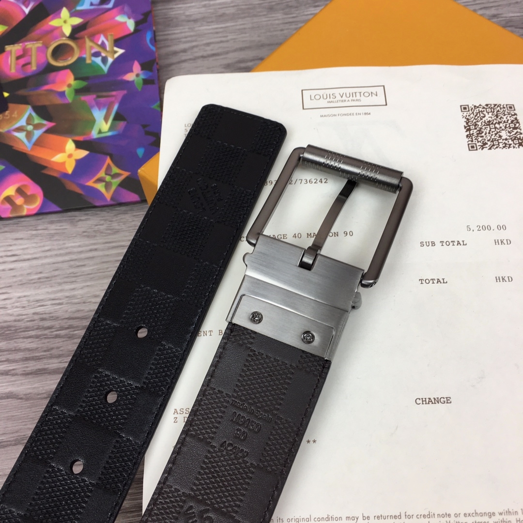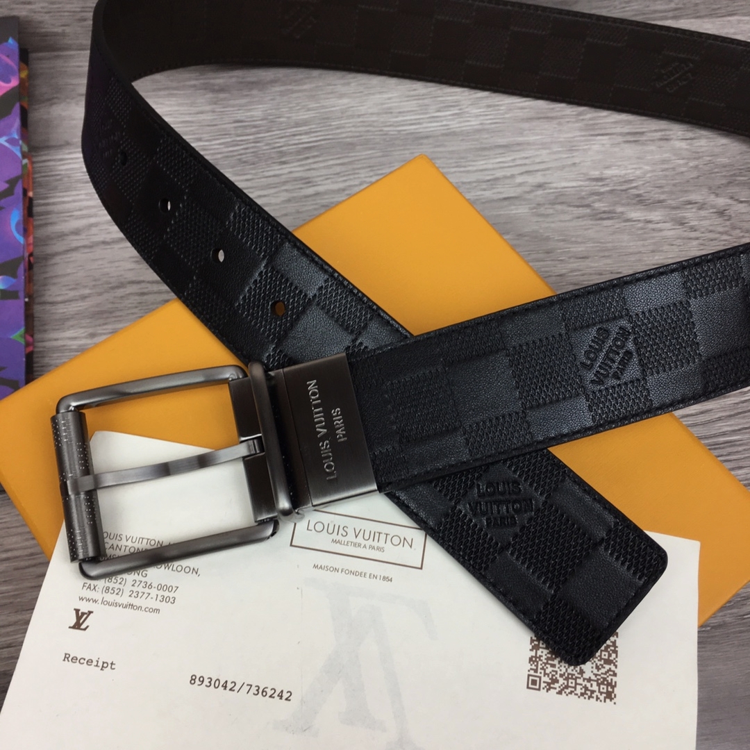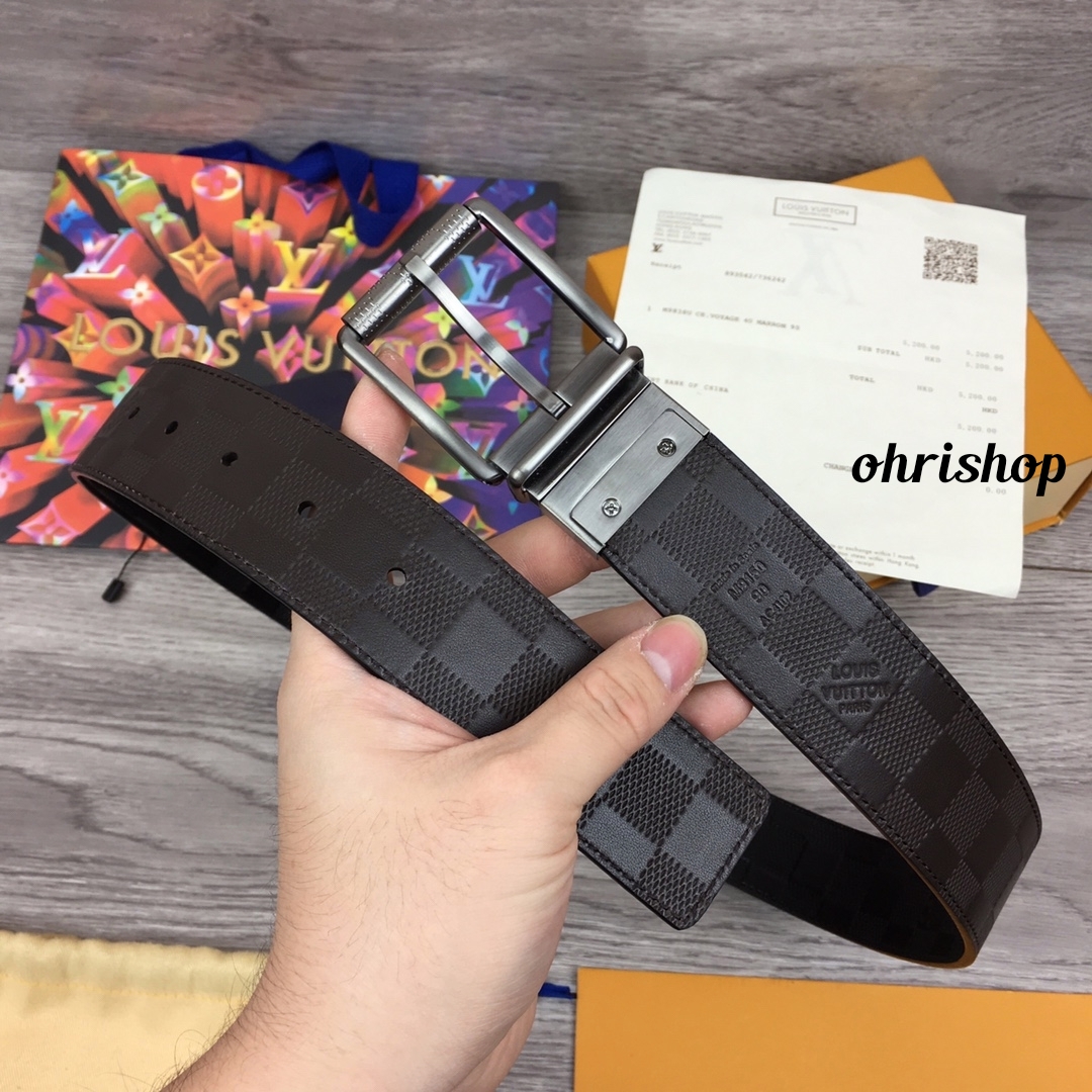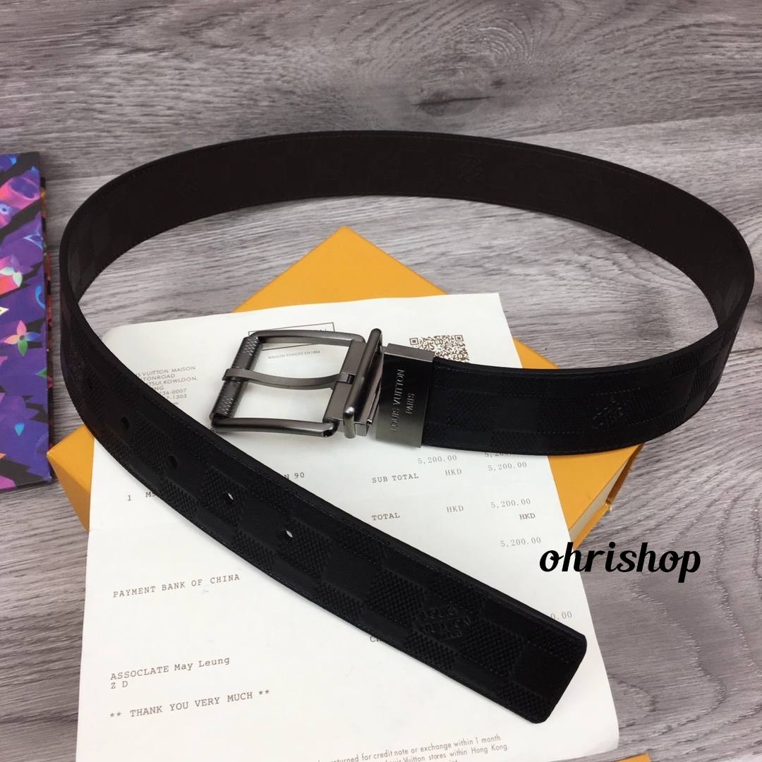다미에 인피니 레더 + 새틴 티타늄 브라스 회전식 버클